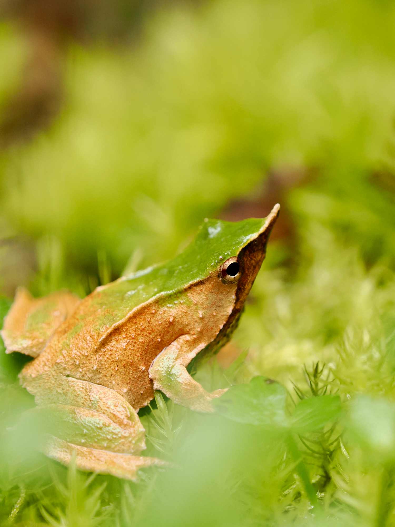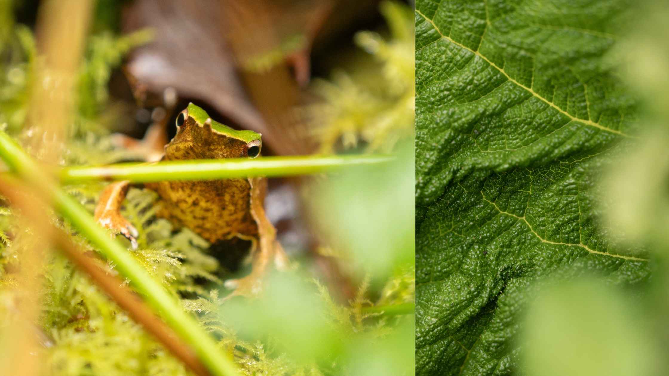 To photograph these tiny wonders, I used the OM SYSTEM OM-1 MKII paired with the 40-150mm f2.8 pro lens and the MC-20 2x teleconverter. I wanted to allow lots of space between myself and the frog to avoid any disturbance and to incorporate the surroundings with a gorgeous bokeh to help frame the frog.